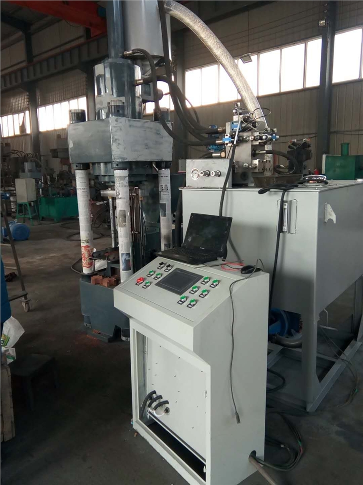 還原鐵粉壓塊機(jī)|鋼屑壓餅機(jī)|金屬粉末壓塊機(jī)主機(jī)由上下橫梁、液壓缸總成、加料缸、模具、料斗、充液總成等組成。