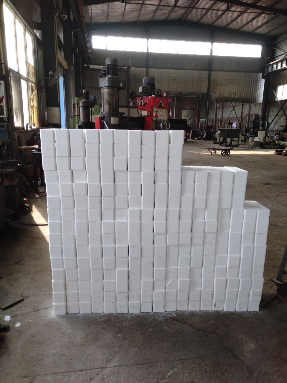 舔鹽磚壓塊機(jī)采用雙向浮動加壓,使舔磚的上下密度保持一致,有效的保證了舔磚的高密度及密度的一致性;舔磚的孔采用抽芯缸,保證了孔的邊緣幾何尺寸非常完善;從而使得舔磚的外觀幾何尺寸比同類產(chǎn)品高一個檔次。