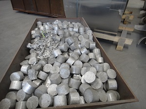 鑫源液壓鋁屑壓塊機,壓塊流程短,壓塊后密度可達1.9-2.2噸/立方米,強大的壓力使切削液分離(可達到98%以上),然后將鋁屑塊在爐中利用余熱或底溫進行烘干處理,約0.5-2個小時后可直接投爐,很 大的縮短中間環(huán)節(jié),同時使氧化損耗降至低。整個流程無需增加大量輔助設(shè)施,在場地使用上無局限性,單套設(shè)備僅需16平方米,添加自動輸送器后可實現(xiàn)單人操作多臺同時運行。鋁屑在粉碎、烘干后成型效果也非常好。
